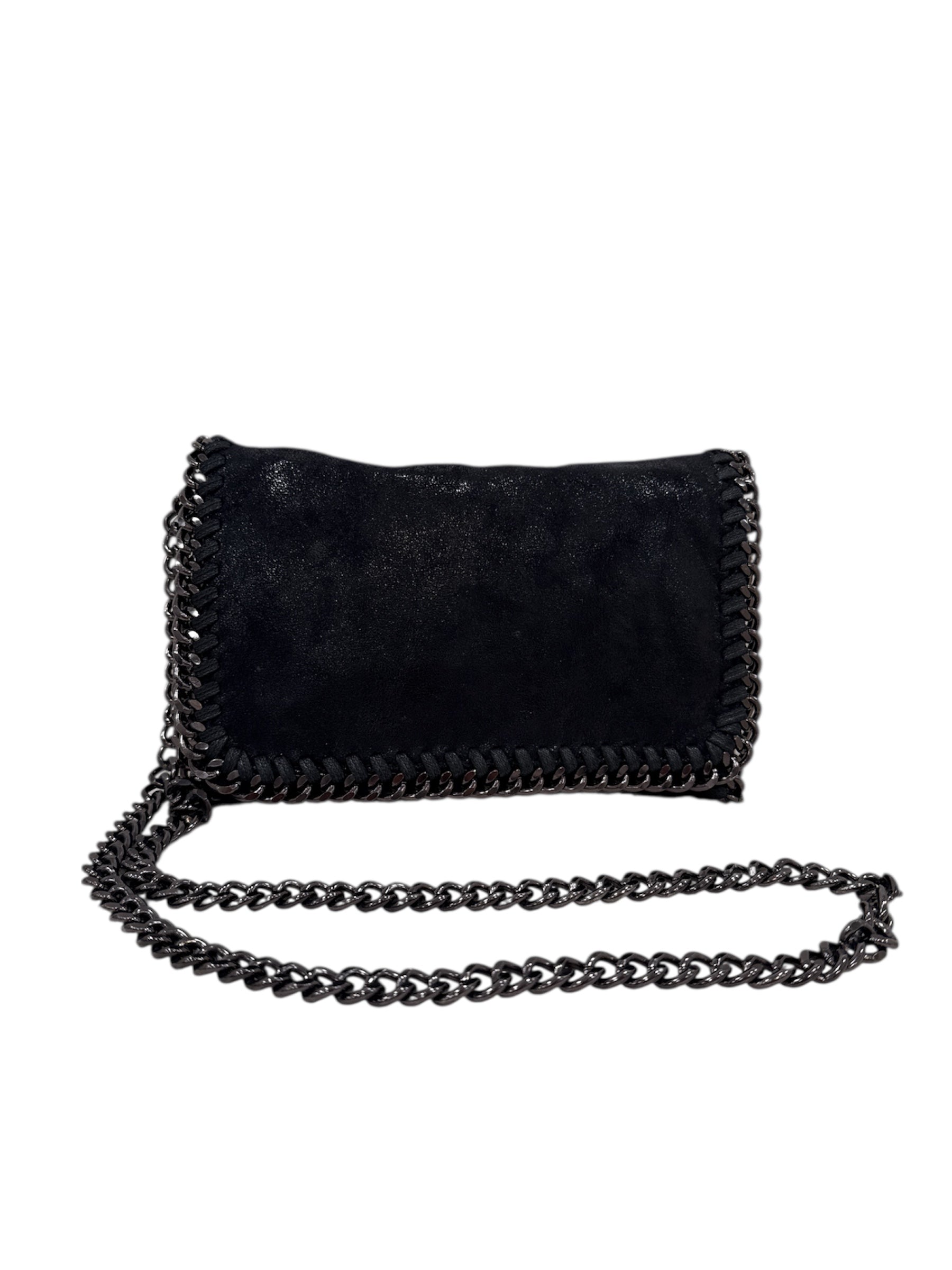 Black crossbody with chain strap and detailing. Bag shows no signs of wear and is in great condition.